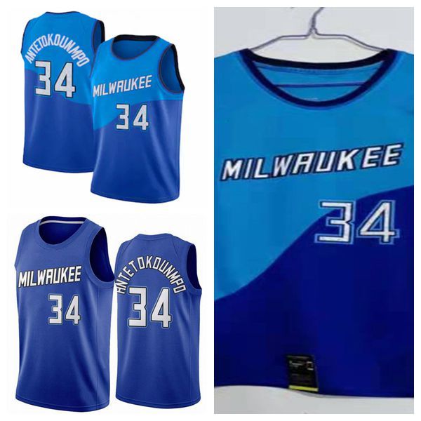 2021 city edition milwaukee bucks blue #34 nba jersey.