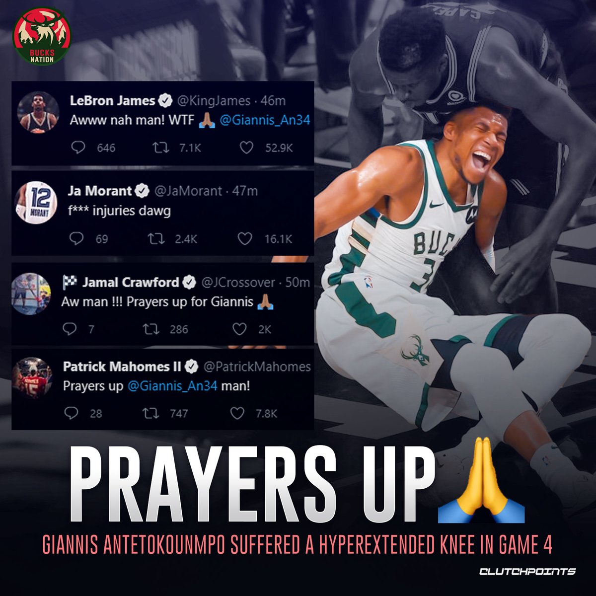 Giannis Antetokounmpo Injury Update Twitter / Ofz23x5sceihmm - 'giannis karma' trends on twitter as nets fans still blame giannis for kyrie's injury.. 'giannis karma' trends on twitter as nets fans still blame giannis for kyrie's injury. It's beauty in the struggle, ugliness in the success. x i'm me and i'm ok with me. Bucks star exits game 4 as hawks tie series. Последние твиты от giannis ugo antetokounmpo (@giannis_an34). Milwaukee bucks star giannis antetokounmpo hyperextended his left knee and will not return to tuesday's eastern conference finals game against the june 29, 2021updated 11:19 pm edt.