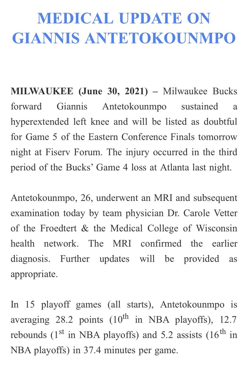 The milwaukee bucks will be without giannis antetokounmpo temporarily, as the superstar has been diagnosed with a knee sprain giannis antetokounmpo injury update. Antetokounmpo scored 14 points in 24 minutes before leaving the game.